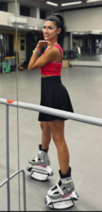 „Вики е лицензиран инструктор по Канго Джъмпс с над 6 години опит. За нея това е любов от пръв поглед – обувките, които са създадени с цел рехабилитация, я възстановяват от предишна травма и от този момент са неразделни. Взимала е участия в международни спортни фестивали и събития с авторска хореография, организирала е лагери и тематични класове. Вики винаги съобразява тренировката с нивото на клиентите и се старае всеки да бъде удовлетворен от часа. Активната част (скачане) е около 40-45 мин, а след това следват упражнения за проблемни зони. Тази комбинация тренира всички мускулни групи и резултатите са гарантирани. Очаква ви с нетърпение и много лудо настроение в залата!“